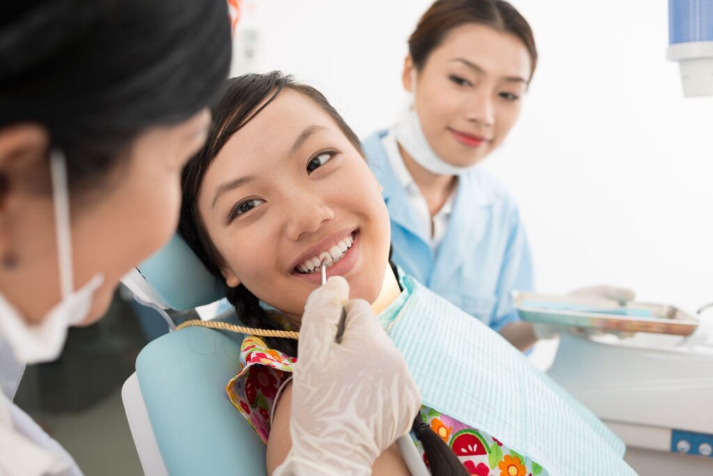 お口の中を優しく確認し、虫歯の有無や歯の生え変わりの状態を診ます。